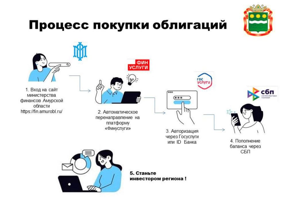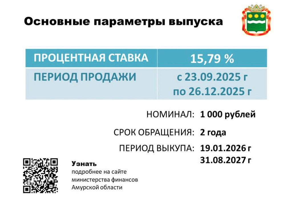 Узнать подробнее о параметрах выпуска, приобрести народные облигации: •на сайте Министерства финансов Амурской области — https://fin.amurobl.ru/ •на платформе «ФинУслуги» — https://clck.ru/3PjxXv