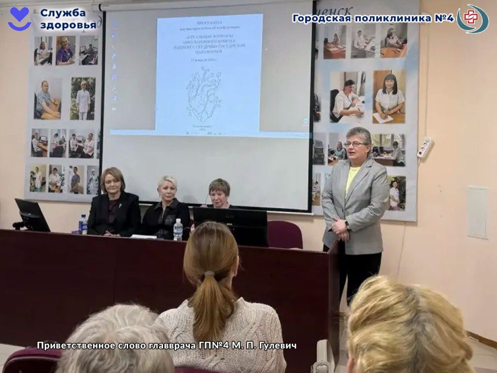 25 февраля 2026 года в актовом зале ГАУЗ АО «Городская поликлиника №4» (ул. Амурская, 213) состоялась региональная научно-практическая конференция «Актуальные вопросы амбулаторного приема: пациент с сердечно-сосудистой патологией». Мероприятие прошло под эгидой Министерства здравоохранения Амурской области и Амурской государственной медицинской академии. Для врачей медицинских учреждений по всей Амурской области была организована онлайн-трансляция, что позволило охватить широкую аудиторию специалистов амбулаторного звена региона.